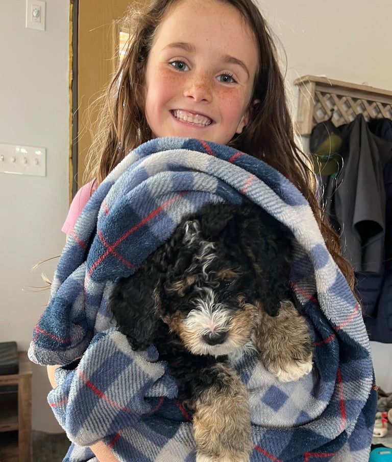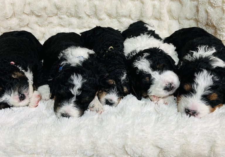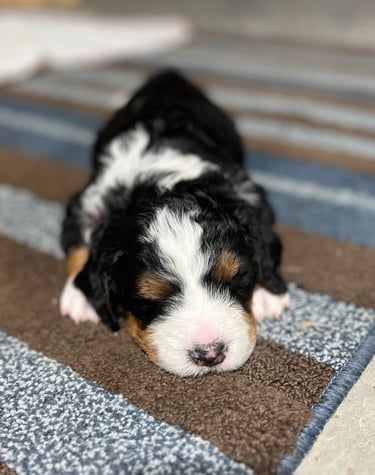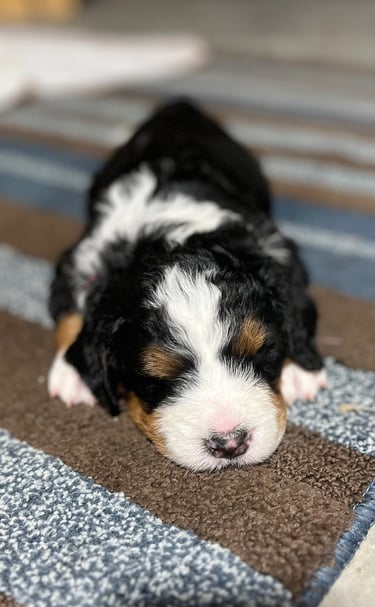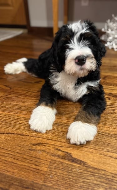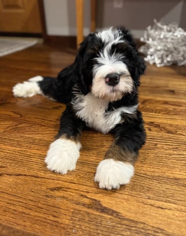 We raise loving Bernedoodle puppies, ensuring they are well-socialized and ready for your family.